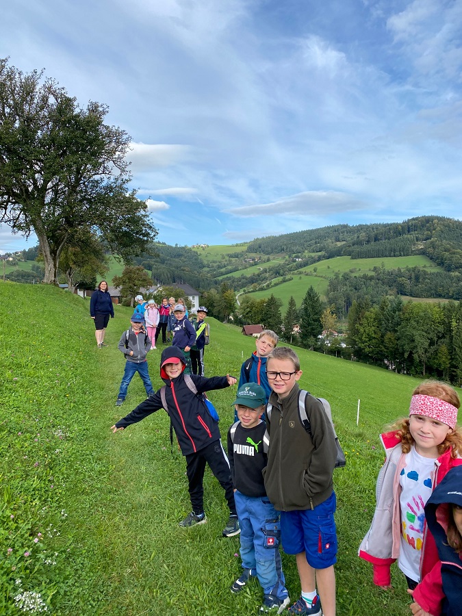 Am 16.September fand bei herbstlichem Wanderwetter der Wandertag der ersten und zweiten Klassen statt. Wir marschierten von der Schule auf den Tabor und den Taborweg entlang Richtung Schliefau. Am Spielplatz konnten wir uns stärken, bevor wir am Radweg wieder zurückmarschierten.