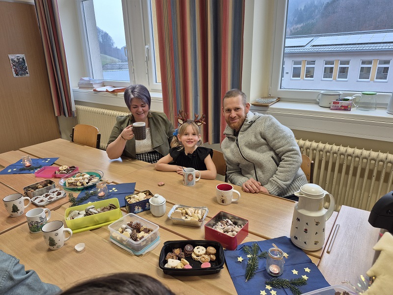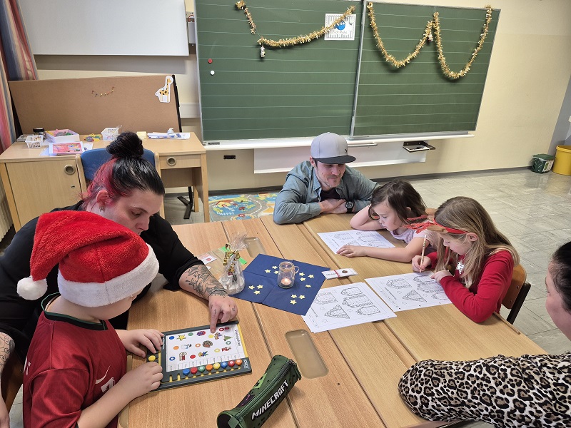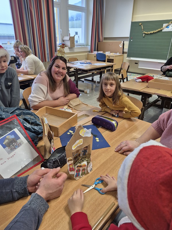 Am 17. Dezember fand in der ersten Klasse eine kleine Adventfeier statt. Nach einem kurzen Theater und Liederstück konnten die Kinder mit ihren Eltern verschiedene weihnachtliche Basteleien herstellen, sowie in der Bücherei gemütlich Weihnachtsbücher lesen. Kekse und Tee durften zwischendurch natürlich auch nicht fehlen!