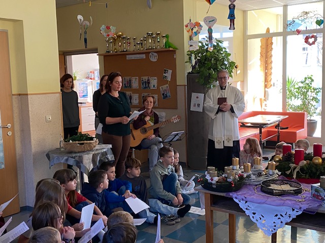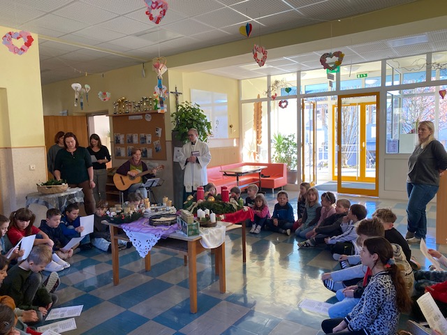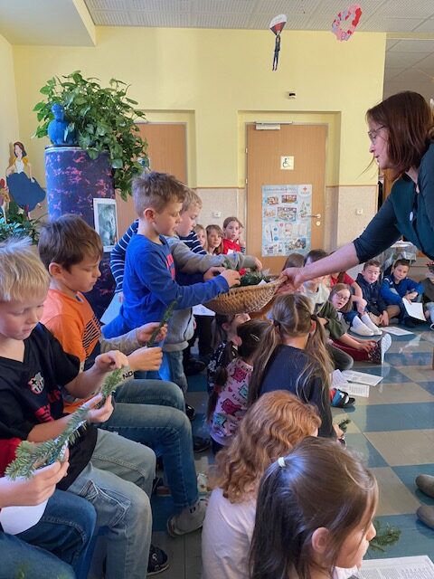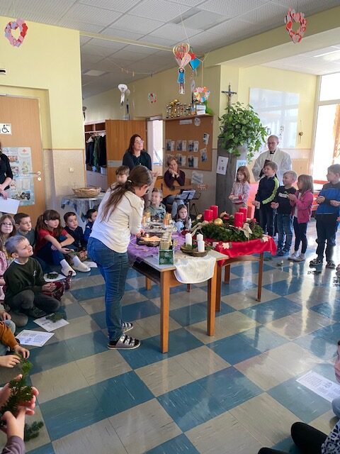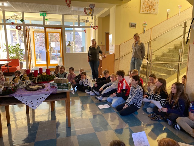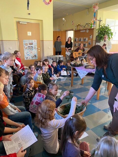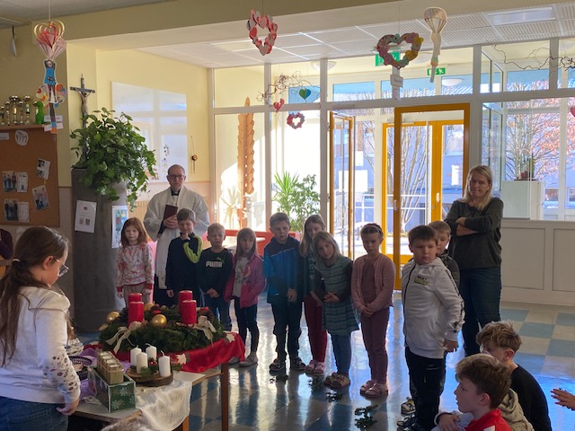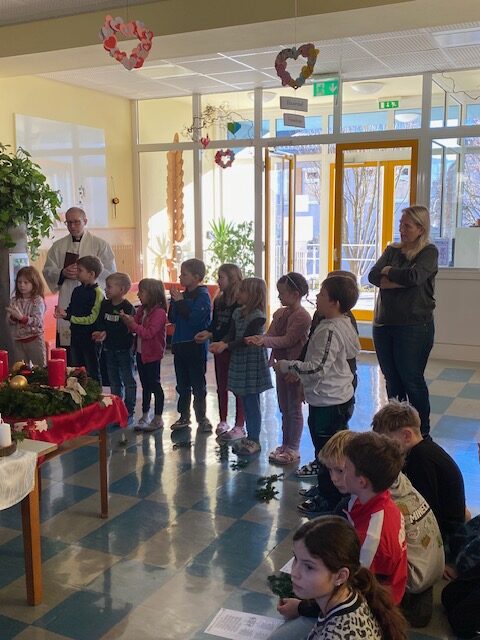 Adventkranzweihe Post author:Manuela Auer Post published:18/12/2025 Wie jedes Jahr wurde von den Eltern und Kindern der 2. Klasse ein wunderschöner Adventkranz gebunden. Bei unserer Adventkranzweihe durften wir unseren Pfarrer Simon Eiginger begrüßen, der auch unsere Adventkränze für die Klasse und Schule segnete.